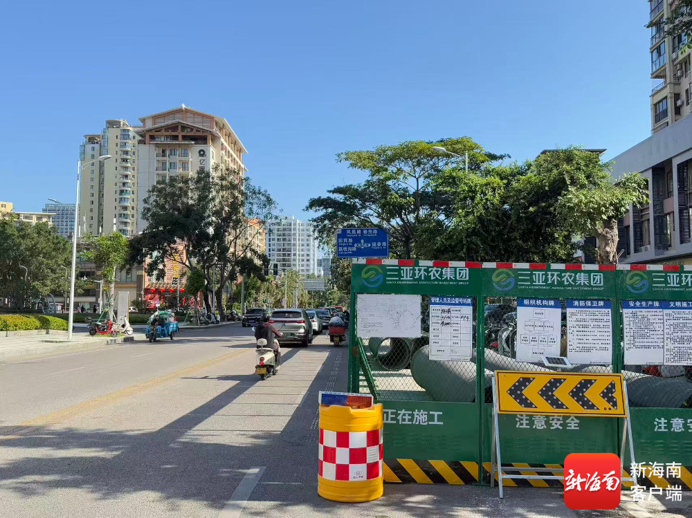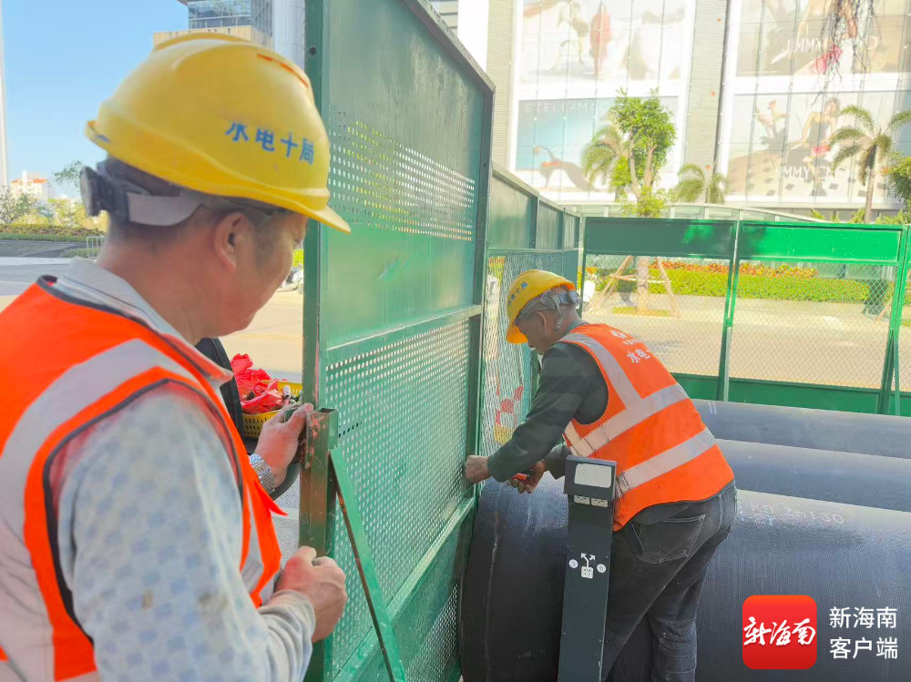 1月5日,三亚月川中路段,施行工程人员正在建立阻隔设备,为供水管网改造做准备。记者 胡丽齐 摄
